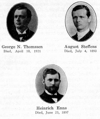 E.R. Suevern, Carl I. Bender, Valentine Wolff, Benjamin Graf, Adolph Orthner and Herman P. Kayser have safely returned after a longer or shorter term of service. Of this heroic group of missionaries, Carl J. Bender was permitted to spend twenty years of most successful work in this dark region of the world's darkest continent.