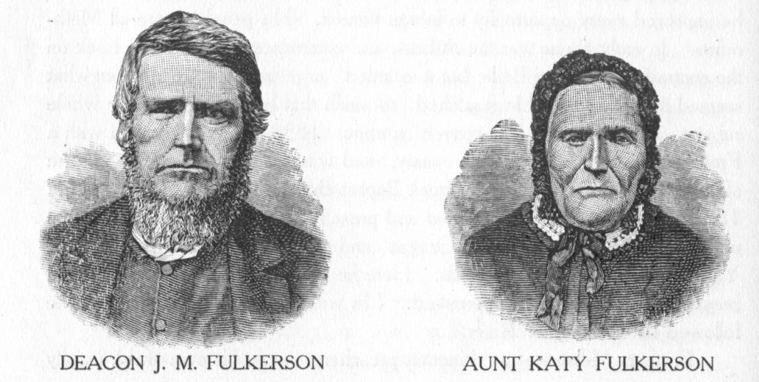 Prominent among these stands Deacon James M. Fulkerson and his wife "Aunt Katy." Like Brother David T. Lenox, he was a natural leader. With very poor educational advantages, his inherent energy, and careful study, supplied the deficiency, until he was a man of unusual intelligence, which, with his keen perceptions, good sense, and clear foresight, set him forward as one whom it was safe to trust. Hence, both in Missouri and in Oregon he was a county judge, and a member of the Legislature. He was also a member of the Constitutional Convention of Missouri in 1845-6, and filled several minor offices in Oregon; in all commanding the respect and confidence of the community .He was born of Baptist parentage in Lee County, Virginia, August 28, 1803. His father moved to Missouri in 1817; he experienced religion in 1823, and was baptized in 1830 by Rev. David Alley into the Sardis Baptist church in Cole County, and soon after made a deacon. He came to Oregon in 1847, and settled in Polk County where he made his home during his life. His long and tedious journey across the Plains was made sad by the death of his beloved wife, who was buried near Green River, July 14, 1847. He had a large family, but married again in 1848. His last wife, "Aunt Katy," crossed the Plains in 1846 by the "Southern Route." On the road she buried her oldest son and his wife, leaving a young babe on her hands to care for; afterwards, two grown daughters died; and her husband also before she reached the settlements. From one of her daughters, Leland Creek (now called Graves' Creek) was named, she being buried there. Aunt Katy did not arrive until late December, and her next son died the next spring. She was very kind and in every way useful in sickness, and a great help to Brother Fulkerson.