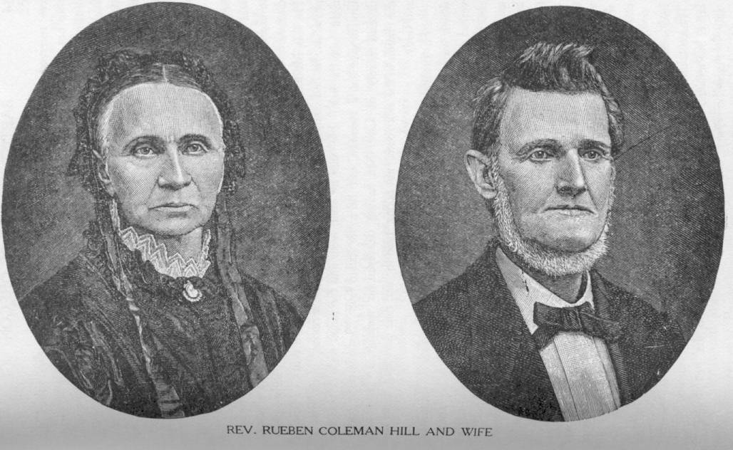 Rev. Reuben Coleman Hill, M. D., was born of Baptist parents in Cumberland, now Russell county, Kentucky, March 27, 1808. In advanced age, his father was licensed. He obtained a fair education, both common and medical, mostly by his own exertions. He was married in 1833 to Margaret C. Lair, a woman who proved to be a blessing to him, and well suited for his diversified labors. He professed religion in 1833, being baptized by his uncle, Rev. Elijah Hanks, into the Knob creek church, in Maury county, Tennessee. He was ordained a deacon in 1836, and in 1844 was licensed but for a time, preached little, though he thought his efforts were blessed with some conversions. But some good revival meetings, and the voice of his church crowded him forward, and he was ordained in 1846. The same year he moved near Keetsville, Barry county, Missouri, where his labors were very successful; his journal stating that he organized a church of eight members which in two years grew to about one hundred. The doctor says, "The church at Keetsville received several Campbellites, and Methodists, and Presbyterians, all of whom I baptized, irrespective of their previous baptism." He also preached at Springfield, Mo., and Lafayette, Arkansas, where he witnessed some rich revivals.