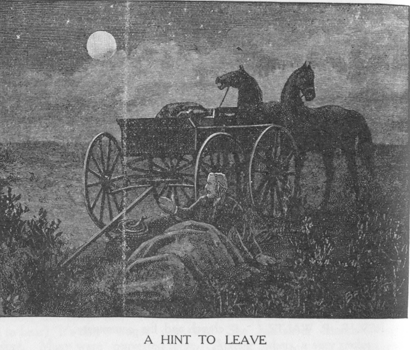Whilst in this latter section, he relates the following incident: The country was but little settled, and sometimes he had to camp on his way to his appointments, so he went prepared. One night, while thus "camped," lying on the ground in his blankets, he was awakened by some disturbance of his team, and raising his head to look around, he saw, coiled up under his wagon, not more than six feet from where his head had been, an enormous rattlesnake with head up and tail a 'singing.' He thinks he never made such a jump in his life. In his fright, he could not readily find a club to kill the reptile, and it escaped.