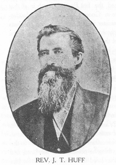 Rev. J. T. Huff was born in Seneca county. N. Y., in 1821. His ancestry and connection were Methodists and Dutch Reformed. He was educated at the Theological Seminary at Albion. N. Y. He was converted and united with the Baptist church at Cuba, Cataraugus county, N. Y. He was licensed by the Healdsburg church, California, in the spring of 1858, and the following fall he was ordained by the church at Clear Lake. On Sundays he preached from camp to camp in the mines, and in various parts of California; a part of the time under appointment of the A. B. H. M. Society. At Sacramento he had his right hand caught in some machinery , and lost his thumb and two first fingers, and the leaders and arteries of his left wrist severed, and came very near bleeding to death, but finally recovered. At Sonoma, he found and brought into service that grand man, Rev. A. R. Medbury.